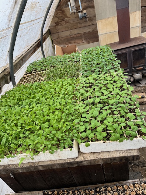 The first plants for the spring shares are in the ground in the greenhouse. We’ve had a taste of spring, but winter is biting back. I’m still not sure when the Spring Shares will start, but after the middle of April…. stay posted and salivating 🙂