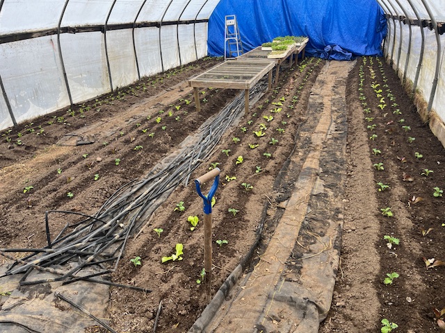 It’s officially spring now. The temperatures tonight and tomorrow night are still -10. You might have noticed, we haven’t had much sun in the past month (tomorrow might be an exception). This means I’m heating the greenhouse (the part that I do heat) 24/7. It also means the greens I’ve planted aren’t growing very fast. The ones I planted two weeks ago and the ones I just planted this week don’t look much different. I’m not sure what this means for the spring csa. Starting the third week in April seems unlikely, although there usually comes a time when everything grows like mad. I’ll keep you posted, so no predicted first pick-up yet. Since I need the spring csa to be finished by the last week of May to make room for the summer fruiting crops, and I’ll be planting 5 weeks worth of crops, it might mean I have to give you two weeks worth in one week… Not sure but wanted to give you a heads up!